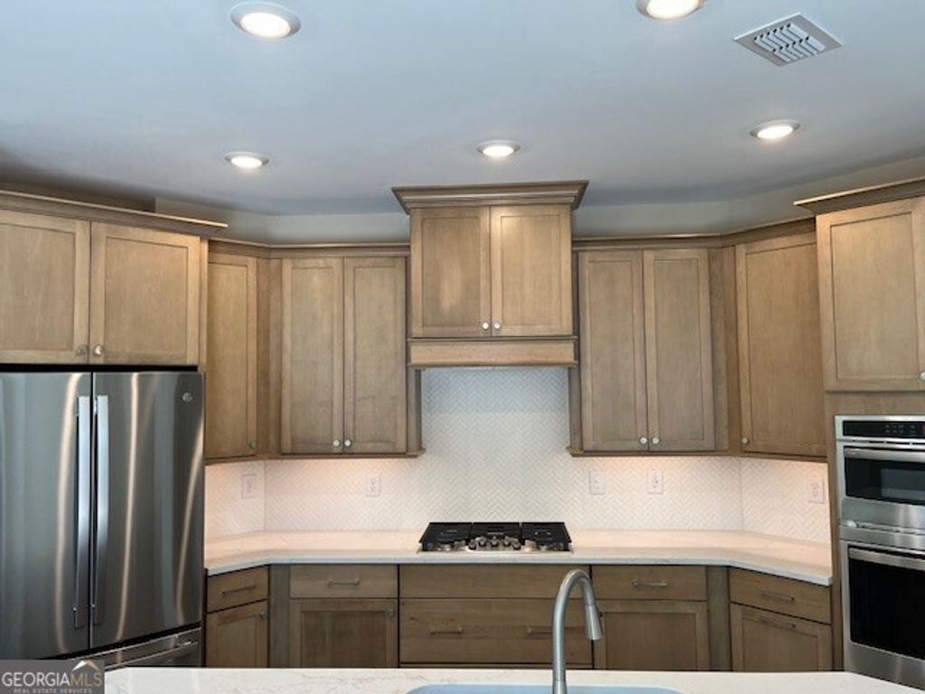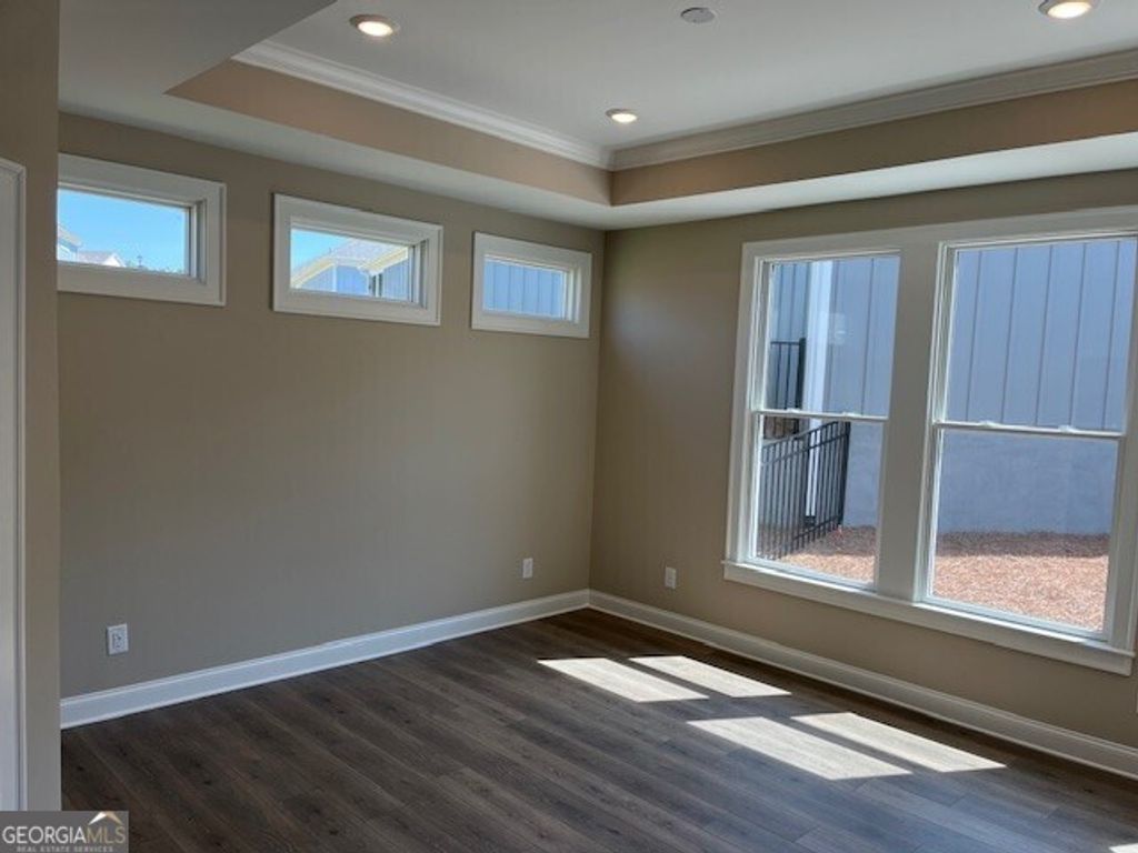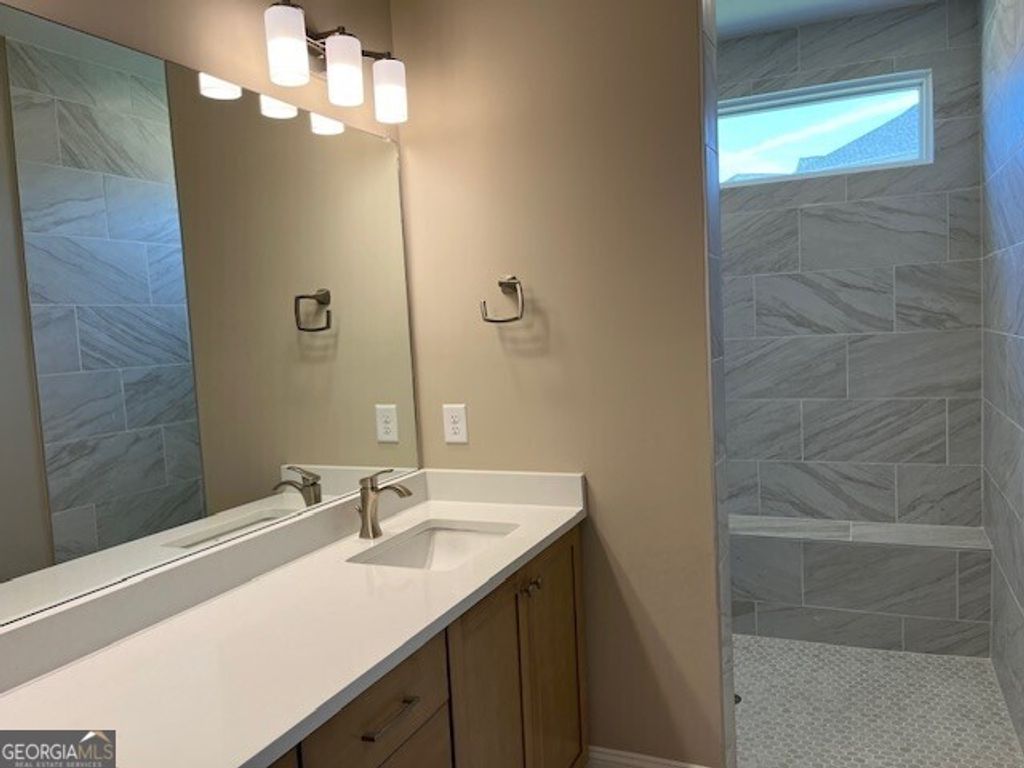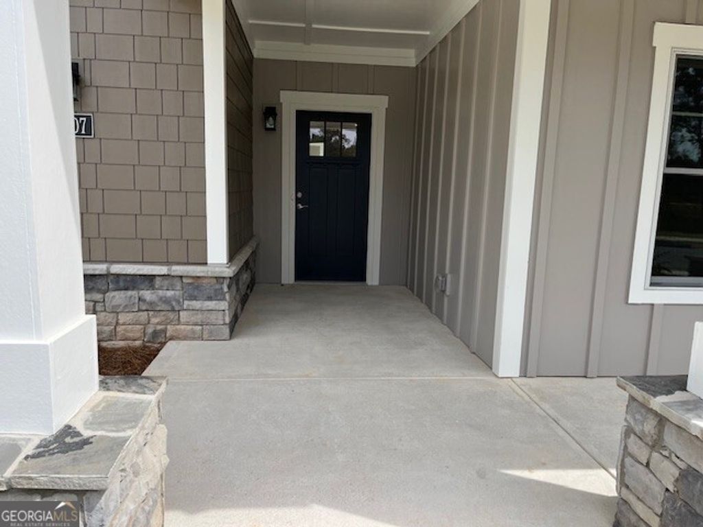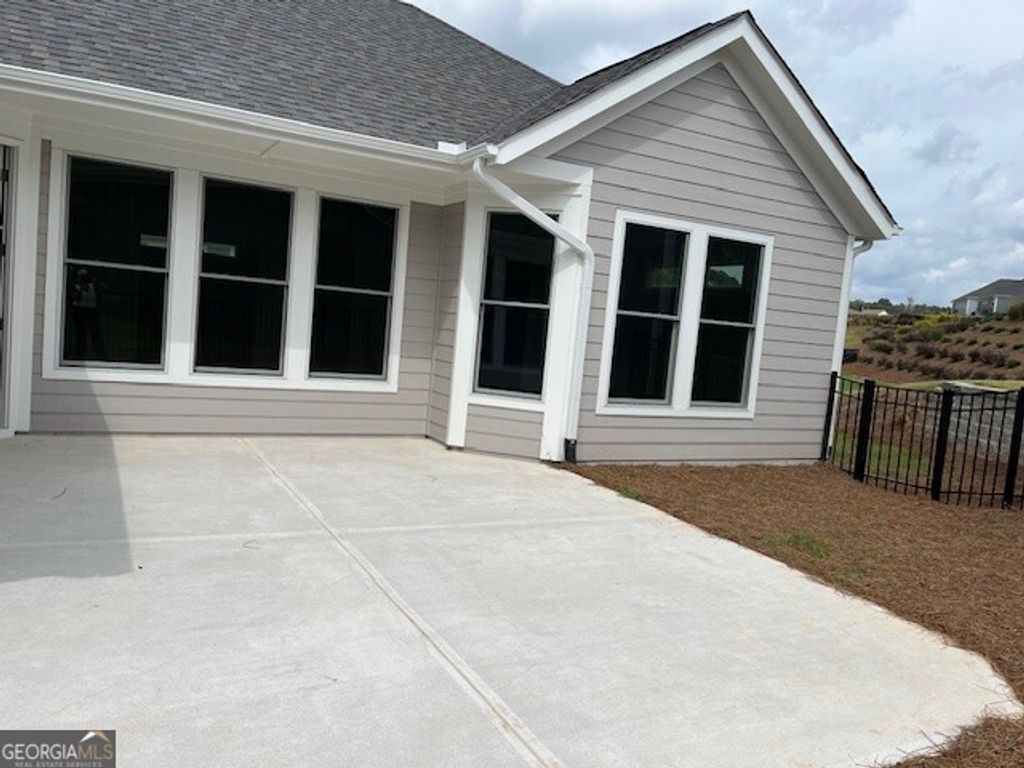 Quick Move-In Opportunity on Lot 100, a large pie-shaped homesite across from the lake, just shy of 1/4 acre, at The Courtyards at Bailey Farms! Our award-winning Portico floor plan, with a bonus suite, has 3 bedrooms and 3 bathrooms with a large, very open, courtyard in our 55+ Active Lifestyle Community. A deluxe kitchen with a gas cooktop, quartz countertops, light wicker color stain full overlay kitchen cabinets, soft closing doors and drawers, roll out shelves and pull-out trash center. Wall ovens with microwave and French 3 door refrigerator included. The open-concept family room, with a fireplace, flows seamlessly into the kitchen and dining area, allowing you to be a part of all your gatherings, even while cooking in the well-equipped kitchen. Enjoy all the natural light from the many over-sized Pella windows at the front and side of the home along with views of the lake from the private courtyard. The owner's bath features a spa-like zero-entry shower, dual quartz vanities with undermount sinks, and a large linen closet. Spacious bonus suite with large bedroom, bathroom with a walk-in shower, and a fabulous view of the lake from the living area. Located in a prestigious Epcon community, The Courtyards at Bailey Farms, residents enjoy resort-style amenities including a pool, large clubhouse with fitness center, pickleball courts, fenced-in dog park, fire pit area and a lake with a dock and plenty of fish! With easy access to I-85 and just minutes from the local grocery and other shopping and dining, 15 minutes to Mall of GA, golf courses, Little Mulberry Park, this home offers both convenience and an active lifestyle. Amenities and lawncare is covered by monthly HOA fees of $185. Construction will be complete by September-schedule your tour today!