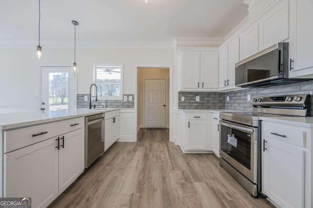 RATE BUY DOWN OFFERED BY THE SELLER - WITH PREFERRED LENDER. Stunning Fully Renovated 4-Bedroom Home on a Spacious Lot! Step into this beautifully renovated 4-bedroom, 2.5-bath home, where modern elegance meets timeless charm. From the inviting large front porch to the custom stairs at the entrance, every detail has been thoughtfully designed. Inside, you'll find a bright and open floor plan featuring a brick fireplace with a raised hearth, creating a cozy focal point in the living space. The large open dining area offers stunning views of the backyard, making it perfect for gatherings. The gourmet kitchen boasts stainless steel appliances, stylish finishes, and plenty of counter space. The expansive primary suite is a true retreat, featuring a spa-like ensuite bath with a dual vanity, a separate shower, and a luxurious freestanding soaking tub. The secondary bedrooms are generously sized, each offering large walk-in closets for ample storage. Enjoy outdoor living on the back patio with a ceiling fan, ideal for relaxing or entertaining. The large, level lot provides endless possibilities for play, gardening, or future outdoor enhancements. This exceptional home combines style, space, and functionality-don't miss the opportunity to make it yours!