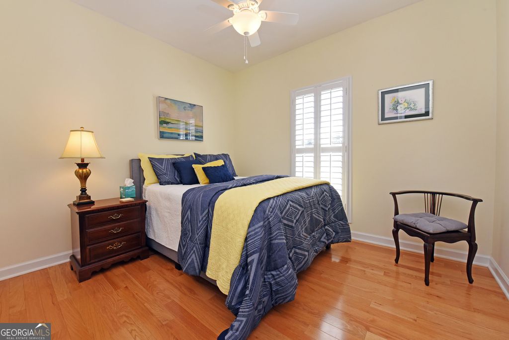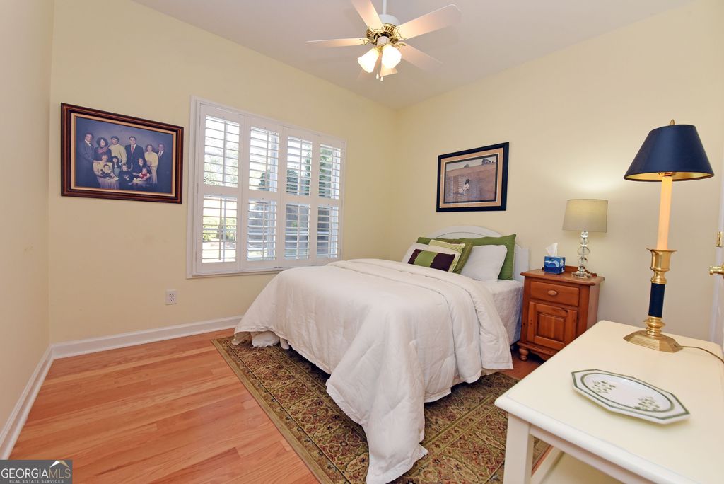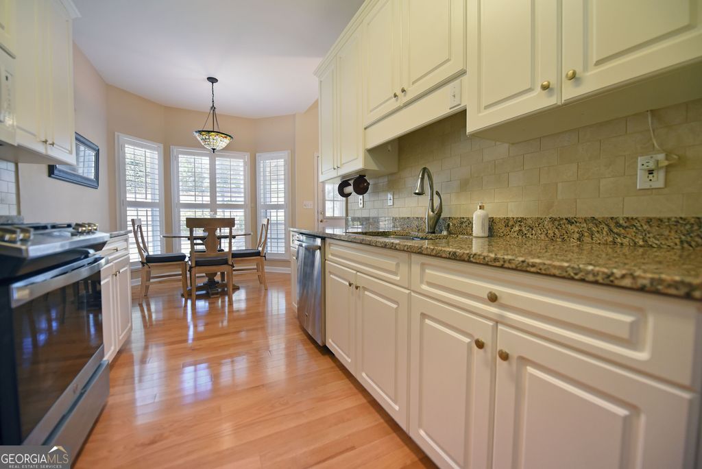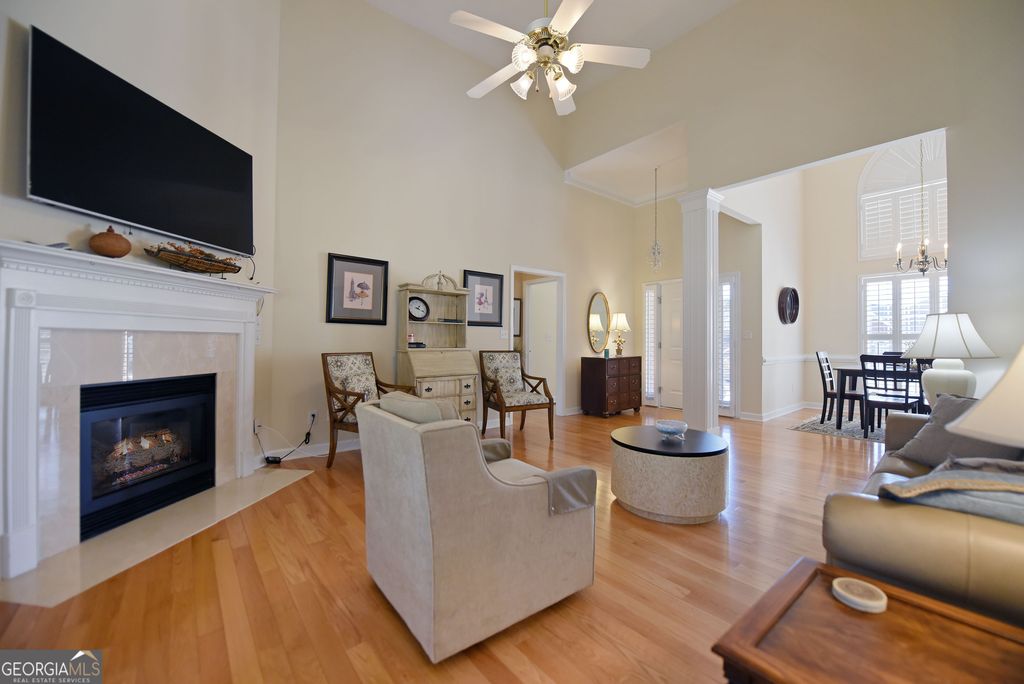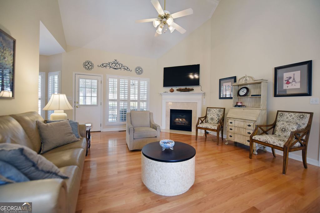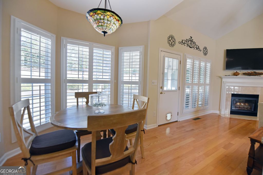 Discover this updated three bedrooms, two bath charming home located in the beautiful, gated Kensington Gardens subdivision. This friendly neighborhood places you within a half mile of grocery stores, pharmacies, restaurants, hospital, and doctors. Delightful 1,515 square foot home showcases the new, gleaming hardwood floors, plantation shutters, granite counter tops, tiled baths, covered porch, fenced back yard, attached garage, and impressive landscaping. Spacious dining/living room with high ceilings and gas log fireplace offers an easy flow for entertaining. Galley kitchen is fully equipped with all appliances, granite countertops, and breakfast nook at the bay window. Master suite features trey ceiling, generous space for large furniture, and walk in closet. Master bath has tiled separate shower, jetted tub, double sinks, and separate water closet. Enjoy the large porch for outdoor living. New roof in 2017. New HVAC system in 2022. New water heater in 2023. Yard maintenance is included in the monthly HOA fees of $200. The thoughtful updates throughout this home create a move-in ready experience that balances modern comfort with timeless appeal.