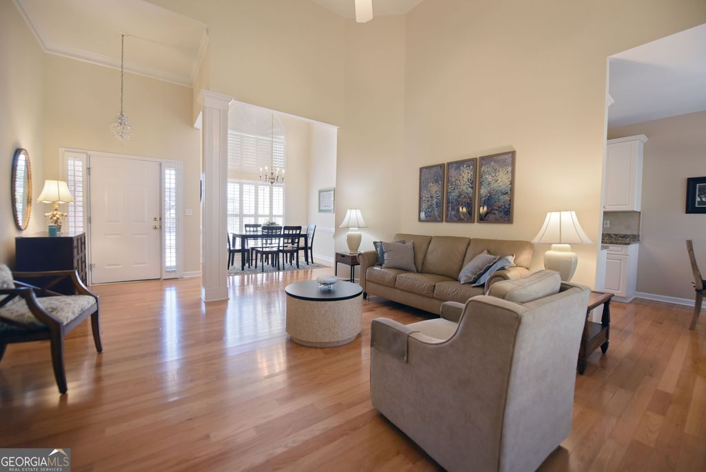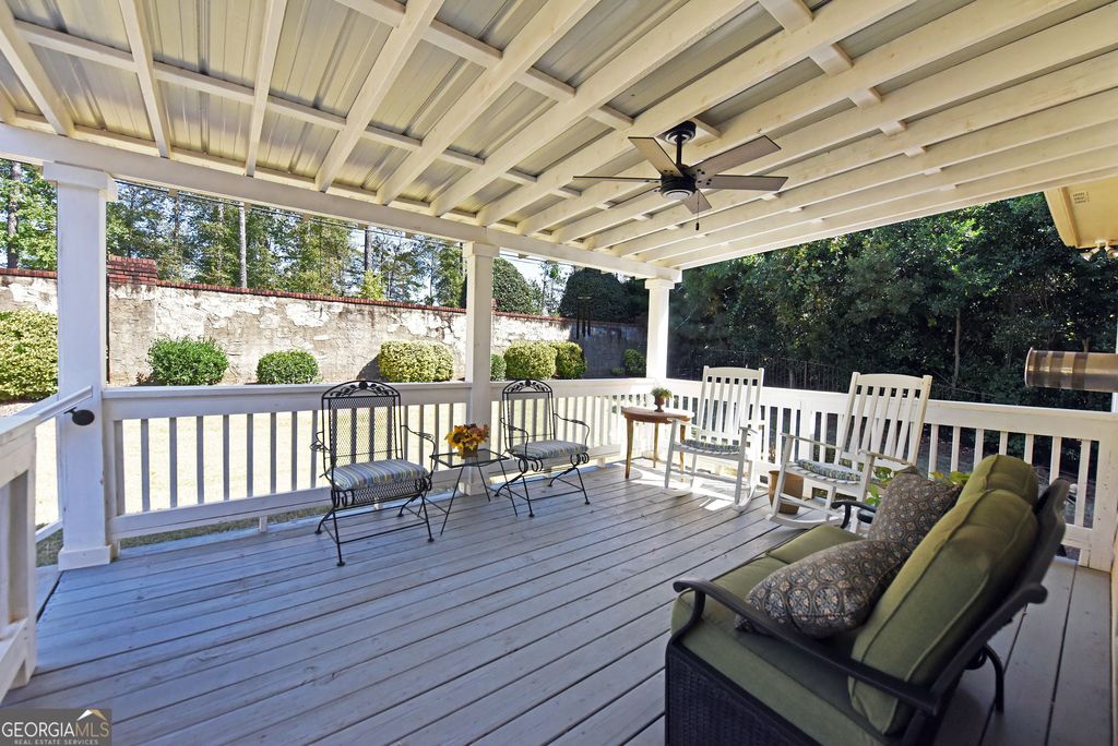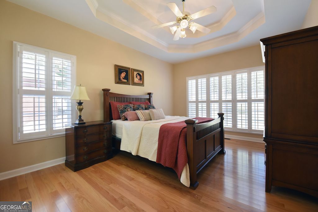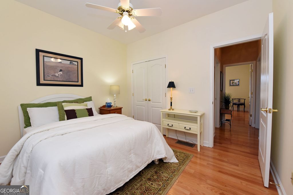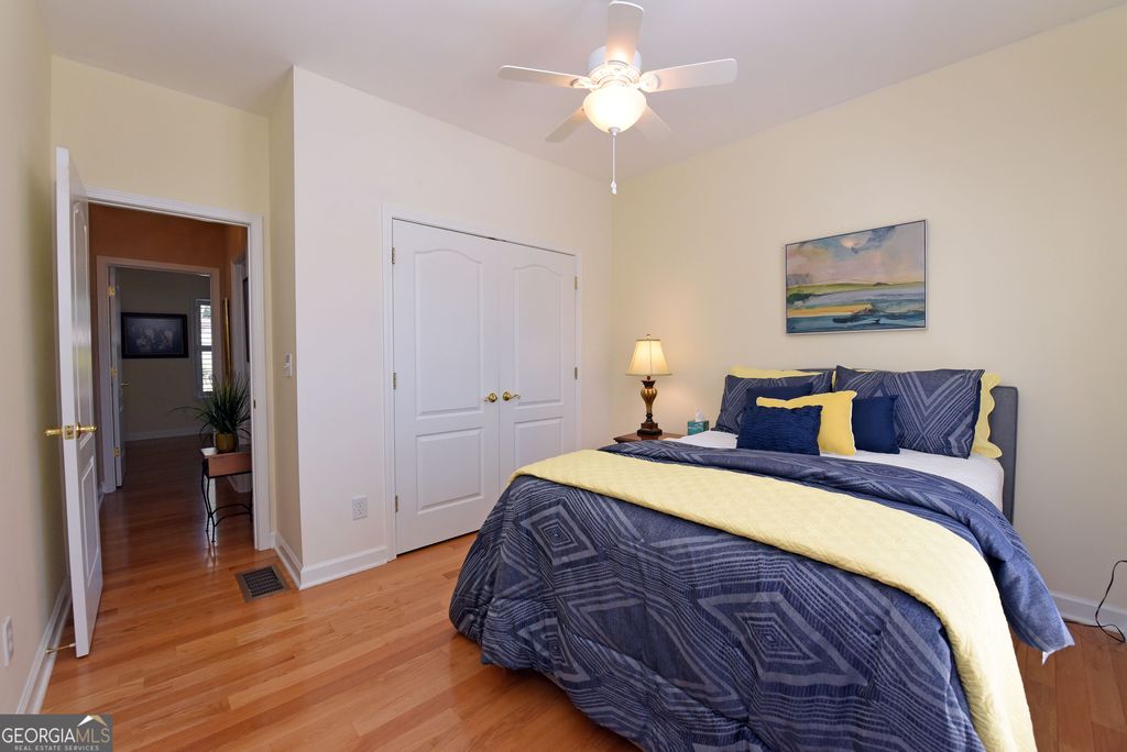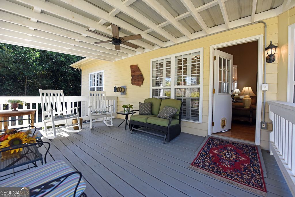 Discover this updated three bedrooms, two bath charming home located in the beautiful, gated Kensington Gardens subdivision. This friendly neighborhood places you within a half mile of grocery stores, pharmacies, restaurants, hospital, and doctors. Delightful 1,515 square foot home showcases the new, gleaming hardwood floors, plantation shutters, granite counter tops, tiled baths, covered porch, fenced back yard, attached garage, and impressive landscaping. Spacious dining/living room with high ceilings and gas log fireplace offers an easy flow for entertaining. Galley kitchen is fully equipped with all appliances, granite countertops, and breakfast nook at the bay window. Master suite features trey ceiling, generous space for large furniture, and walk in closet. Master bath has tiled separate shower, jetted tub, double sinks, and separate water closet. Enjoy the large porch for outdoor living. New roof in 2017. New HVAC system in 2022. New water heater in 2023. Yard maintenance is included in the monthly HOA fees of $200. The thoughtful updates throughout this home create a move-in ready experience that balances modern comfort with timeless appeal.